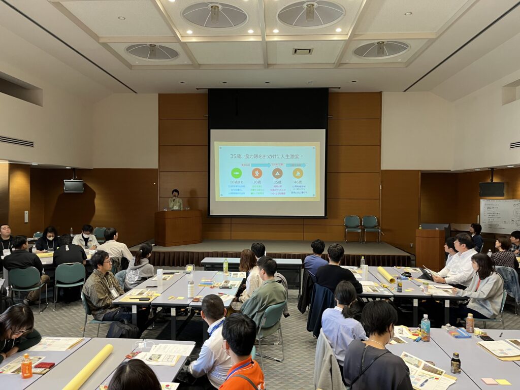 最初のプログラムでは、(一社)えひめ暮らしネットワーク事務局長である千々木涼子の進行の下、「地域おこし協力隊の活動と自己実現」をテーマとした地域づくりクロスロードというワークショップを実施しました。